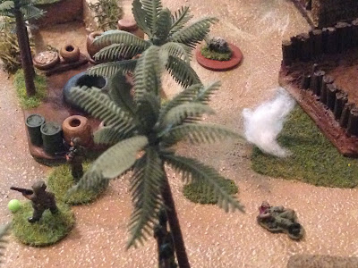 The clang was the sound of the enemy recoiless rifle team (bottom right) slamming another round into the chamber (chamber? Is that the right term? I dunno, we didn't have recoiless rifles in the Corps, and though I ran into some in Afghanistan I never fired one). They send another 90mm round at the Marines on the left (top left)...