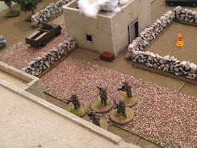 Lt Hinajosa and two of his men lay down fire as Captain Soares checks the remaining casualty: he's okay, back in the fight! Pretty lucky, two walking wounded!